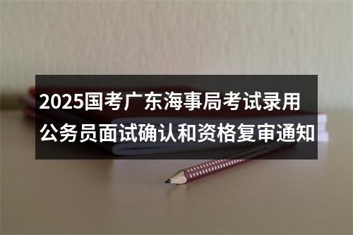 2025国考广东海事局考试录用公务员面试确认和资格复审通知 根据公务员考试录用工作有关规定,现将广东海事局2025年度考试录用