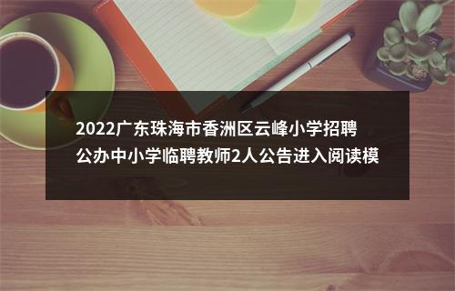 原标题:2022年珠海市香洲区云峰小学公开招聘公办中小学临聘教师公告