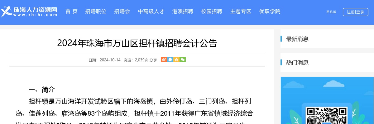 原标题:2024年珠海市万山区担杆镇招聘会计公告