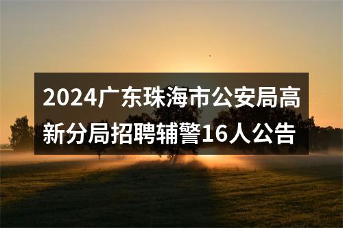 因工作需要,珠海市公安局高新分局决定面向社会公开招聘16名辅警(非人民警察编制、非事业编制),现将有关事项公告如下: