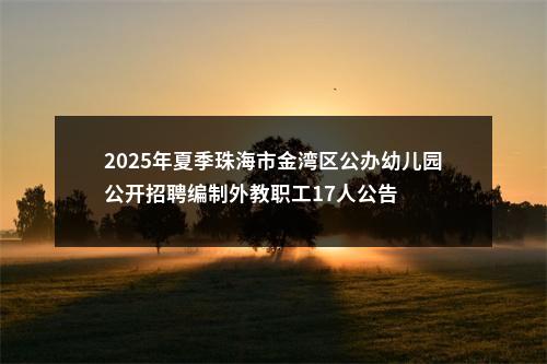 【2025年夏季珠海市金湾区公办幼儿园公开招聘编制外教职工17人公告】相关岗位:
