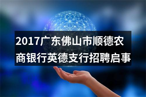 【2017广东佛山市顺德农商银行英德支行招聘启事】相关岗位: