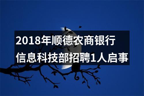 【2018年顺德农商银行信息科技部招聘1人启事】相关岗位: