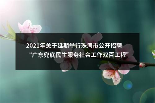 原标题:关于延期举行珠海市2021年公开招聘“广东兜底民生服务社会工作双百工程”乡镇(街道)社会工作服务站社工考试的公告