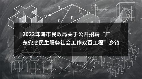 【2022珠海市民政局关于公开招聘“广东兜底民生服务社会工作双百工程”乡镇(街道)社会工作服务站社工递补录用人员名单及有关事项的公告】相关岗位: