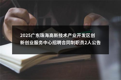 原标题:珠海高新技术产业开发区创新创业服务中心公开招聘2名合同制职员公告