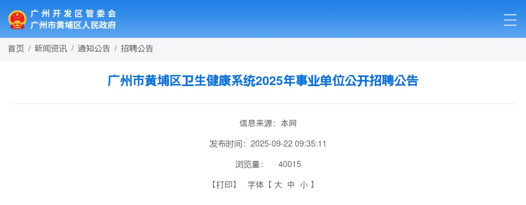 原标题:广州市黄埔区卫生健康系统2025年事业单位公开招聘公告